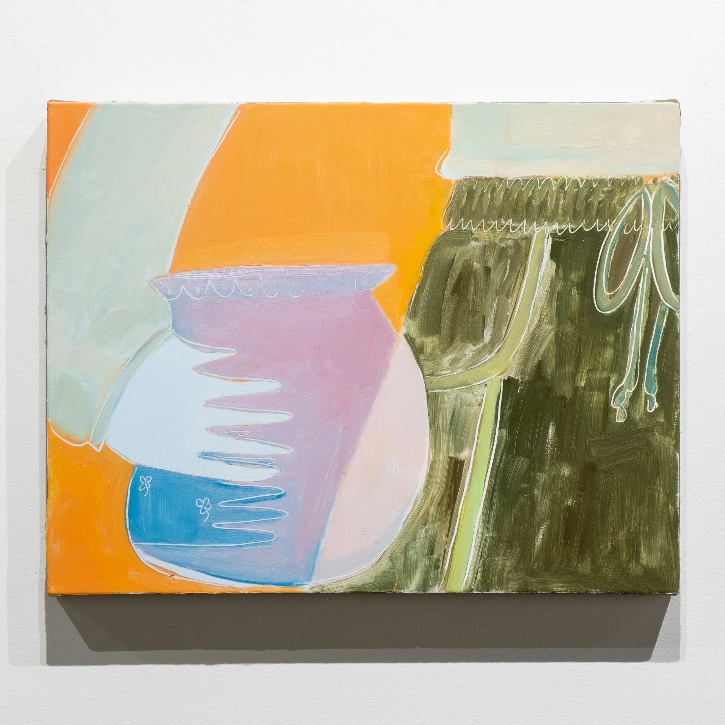 Green Arrangement, oil, pastel and cold wax on canvas, 11”x14”, 2021